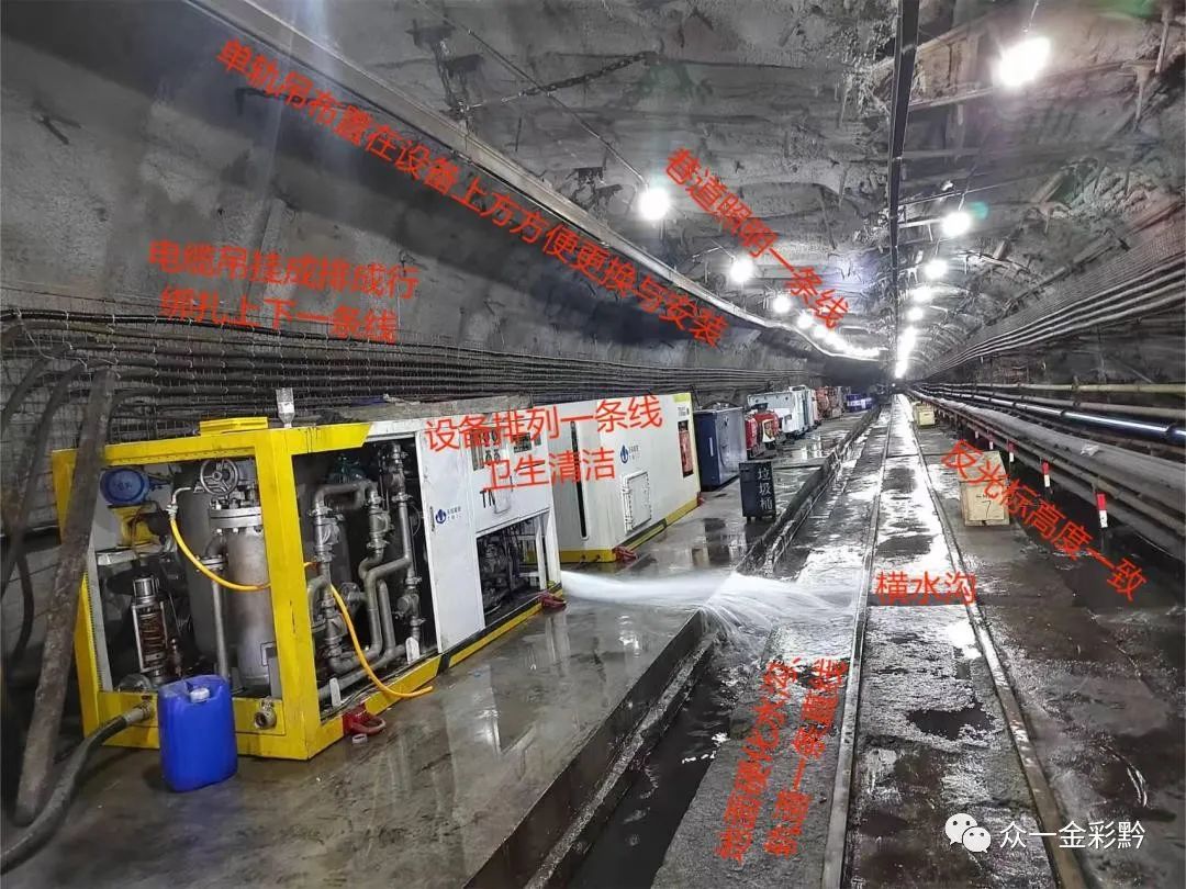 更衣室、澡堂幹淨衛生(shēng),衣服擺放(fàng)整齊,從井口到井底,雖然局部巷道成型不是很好,但(dàn)是整條巷道腰線上下采用兩種不同的塗料進行噴塗,在腰線位置,皮帶架,防護網設置了反光(guāng)标志,給人(rén)一種簡單清晰的感覺。主要大(dà)巷内均安裝了兩排照(zhào)明燈,巷道交叉口、轉彎點、轉載點等重點部位增設照(zhào)明裝置,大(dà)巷到工(gōng)作(zuò)面文明衛生(shēng)幹淨,井下每隔一定距離設置了垃圾桶,不存在雜物堆積,垃圾亂丢等現象。與公司礦井現有的形象形成鮮明的對比。